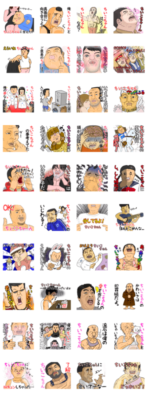 ちいこちゃんが大好きな男達(オカマ1人含む)が集結したスタンプ。きもいスタンプだが彼女、奥さん、お友達も心の中は嬉しいはずだよ。だって君に愛されてるんだもん。けんと画伯 より発売