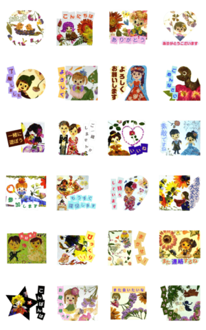 押し花アートであいさつとメッセージ2 スタンプ画像一覧