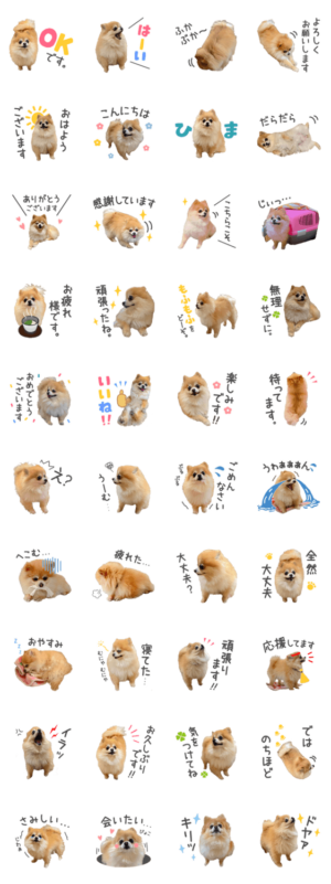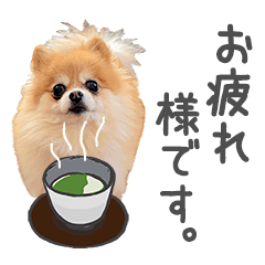 小さなポメラニアンはなちゃんの犬写真スタンプ。 日常で使える敬語や挨拶もあります。 犬や動物が好きな方にお勧めです。お仕事やご家族、ご友人にどうぞ。mocopei より発売
