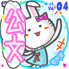 ゆっけ。が贈る【公文】用名前スタンプ04です。友達や恋人とのやりとり、グループの連絡にぜひ。《ゆっけ。のアニぱ!》04「ガールなうさぎちゃん」です。