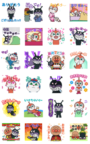 タイトルほどにはばいきんまんメインのスタンプは多くない。とはいえアンパンマンのキャラは相当知名度が高く、汎用性は高い。