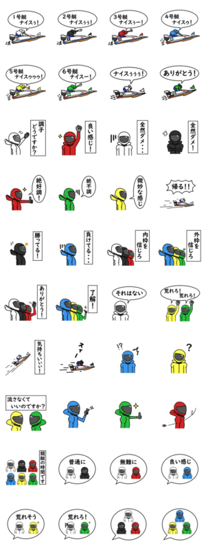競艇が好きな人用のスタンプです。身内同士の連絡に便利そうなものを描いてみました。堅あげ太郎 より発売