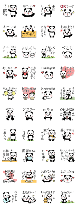ほのぼのとしたゆるーいパンダのスタンプ、PART2です。ginger より発売