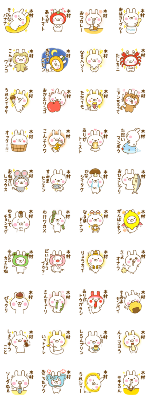 ゆる~く、かわいい、うさぎ(うさひな)の☆木村☆きむらの死語、ダジャレ名前スタンプです♪