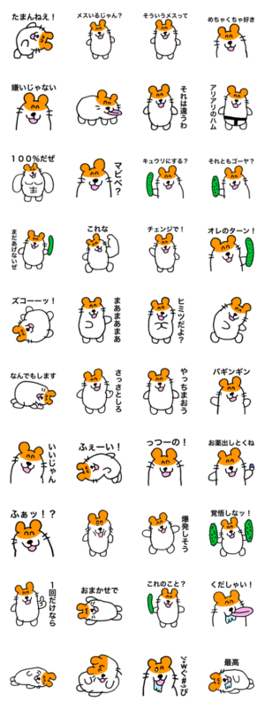 ウリ科の野菜を育ててる性格に癖のある笑顔で語るハムスターのスタンプ!ゆとりレコーズ より発売
