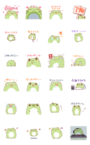 ころころとした大福のようなカエルのスタンプ第5弾です。踊ったり跳ねたりもちもちと動くアニメーションスタンプです。