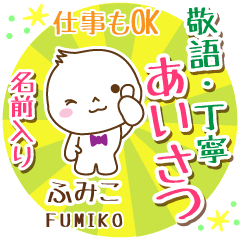 お名前入り大人日常マナーや仕事丁寧敬語挨拶[ふみこ/フミコ/文子/郁恋/喋子/史瑚/吏虹/奎恋/冨美子/深満子/夫実娘/富聖子/布三子/章彌子/芙弥子]様専用なまえスタンプ!お名前入りスタンプ専用★アイシスデザイン株式会社 より発売