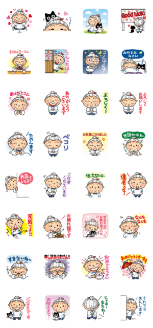 よねおばあちゃんがキャラクターのスタンプです。日常的に使われる挨拶集です。M-michi より発売