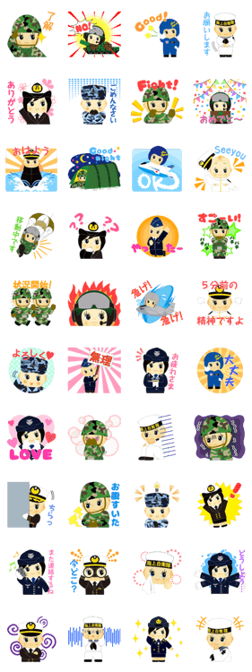 可愛さの定番キューピーの自衛隊バージョンだからイカつさもなくキュートにまとまっていて良いスタンプですね。