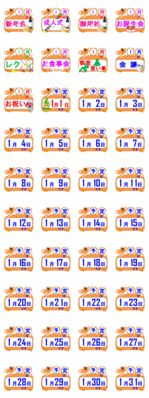 【1月】御用始・成人式・新年会の日程連絡 スタンプ画像一覧