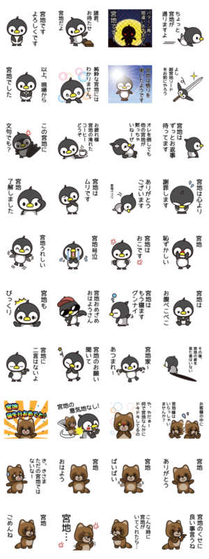 宮地さんと宮地さんの友達用の動物系ペンギンスタンプです。本人は勿論、宮地さんの周りの人も宮地さんに使ってあげましょう。