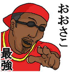 おおさこ専用のファンキーなラッパー名前スタンプです。大迫/大佐古/大廻/大硲/大窄/多迫/大生紗子/王迫/オオサコ。無難な面白いシュール。苗字。