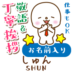 大人日常マナーや仕事丁寧敬語挨拶[しゅん/シュン/舜/旬/春/洵/雋/純/昇/濬/俊/準/峻/隼/瞬/惇/竣/筍/駿一/俊二/俊哉/優駿/春三]様専用お名前入りスタンプ!なまえ姓苗字お名前入りスタンプ専用★アイシスデザイン株式会社 より発売