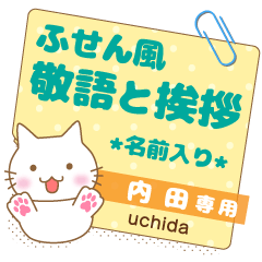 うちだ/内田様用★ふせん風ねこの大人日常マナーと会社仕事丁寧敬語挨拶スタンプ/ネコフセン/猫付箋メモ/お名前入り/なまえ姓苗字/ビジネス職場しごと/サラリーマン業務お名前入りスタンプ専用★アイシスデザイン株式会社 より発売