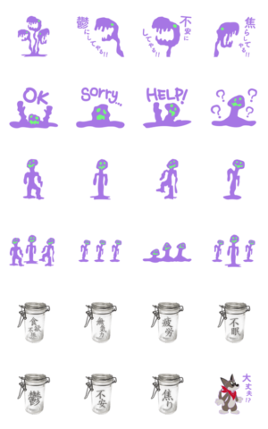 大型連休から生まれた巨大モンスターウルトラ五月病とネガティヴの沼から這い上がったゆかいなネガティヴニンゲンたち、そして五月病によるストレスが溜まったビンが登場!クッキーパーク より発売