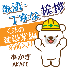 熊のまるくま丁寧挨拶クマ建設編名前入り[赤木/あかぎ/アカギ/垢木/明城/赤井/赤城/赤来/赤鬼]苗字姓名/現場仕事作業員/土木建築士/職人/電気水道工事/大工工務店/会社お名前入りスタンプ専用◆アイシスデザイン株式会社 より発売