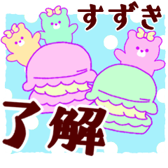 名前すずき鈴木/くまゆめかわイイ/使えるおしゃれパステルカラー/敬語スタンプ/ハート/スイーツ/リボン/承知致しました/おめでとう/了解/お大事に/ゆっくり休んで下さい