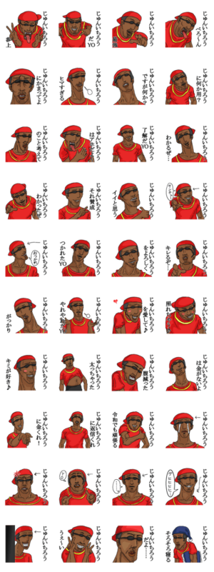 じゅんいちろう専用のファンキーなラッパー名前スタンプ。純一郎/潤一郎/淳一郎/純市郎/準一朗/順市郎/隼一朗/旬一郎/淳一朗/諄一郎/ジュンイチロウ。無難な面白いシュール