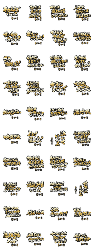ちいこさん専用、相手を癒し励まし応援するスタンプ。迫力満点の筆文字の熱い言葉が胸に突き刺さります。きらきらゴージャスだから元気が出ること間違いなし。