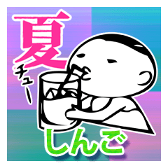 しんごさんの名前入り、大きめでか文字の夏版。暑い、涼しい、夏休み、祭、海、プール、花火、浴衣、すいか等の夏に関連したものや、娯楽、日常生活のスタンプです。