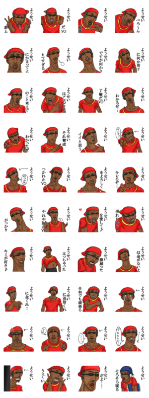 ようせい専用のファンキーなラッパー名前スタンプです。ヨウセイ/陽生/雍正/養正/養生/庸生/洋征/洋正/陽成/陽正/洋星/葉星/陽星/耀星/ようちゃん。無難な面白いシュール。第六排便魔王 より発売