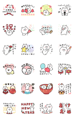 お誕生日/お正月/結婚祝い/出産祝い/記念日から母の日など様々なお祝いやイベントで使えるお祝いパックです。 *過去に販売していたスタンプのリパッケージ版となります。