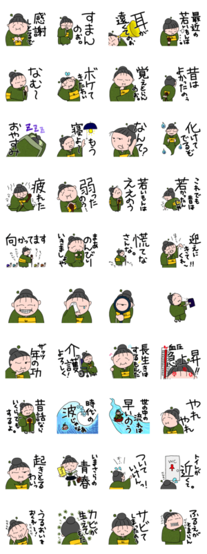 少し関西弁が混じってる着物姿のお婆ちゃん。ばあばからお年寄りならではのちょっとシュールな一言も可愛いく。老人・高齢でなくてもちょっと年上の方なら自虐的に使えますPush Champy より発売