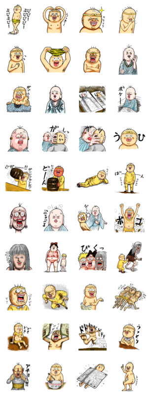 昔懐かしの漫画、珍遊記のスタンプです。珍遊記特有の下品だけど面白いデザインがオススメです。