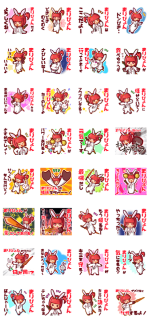 ゆっけ。が贈る【まりぴょん】用名前スタンプ12です。友達や恋人、グループでのやりとりにぜひ。《きぐるみじょし》01「うさぎなミコちゃん」と親友の「ガルうさ」です。