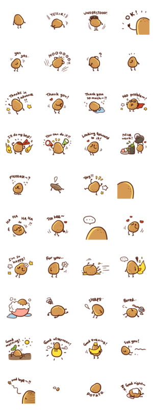 ゆるいポテトの日常用スタンプ英語版。tenko より発売