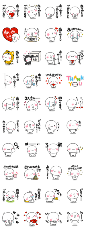 しろくてまるいキャラクター「しろまる」のありがとうスタンプです。無難に使える内容のみ厳選している無難な白キャラです。【作:いしいともこ】