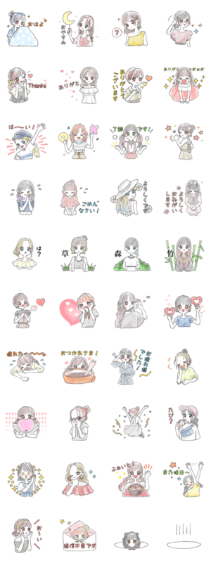 オシャレなふんわりかわいい女の子のスタンプです。日常会話で毎日使いやすい♪彼氏やお友達に。