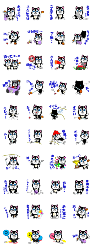 ゴルフをするハスキー犬で会話するスタンプです。練習やトーナメント、ゴルフコンペや日常会話に使えるスタンプです。