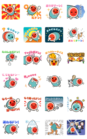 大人気ゲーム「太鼓の達人」のどんちゃんが、しゃべって動くスタンプになって初登場!かわいいどんちゃん達の多彩なスタンプでトークを盛り上げよう!バンダイナムコエンターテインメント より発売
