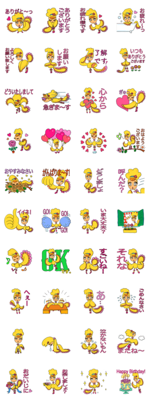 可愛い鳥のきぐるみ女子。使いやすい言葉で、おしゃれだよ。Minako Saitoh Botsford より発売
