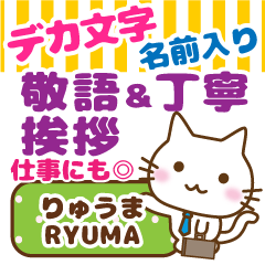 りゅうま様用ねこの丁寧デカ文字仕事にもOK[リュウマ/琉真/龍磨/竜魔/瑠真/隆摩/竜眞/流麻/隆馬/留丸/劉魔/硫摩/柳万/笠倍/冶蒔/溜麻]なまえ姓苗字お名前入り猫スタンプお名前入りスタンプ専用★アイシスデザイン株式会社 より発売