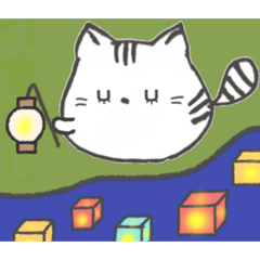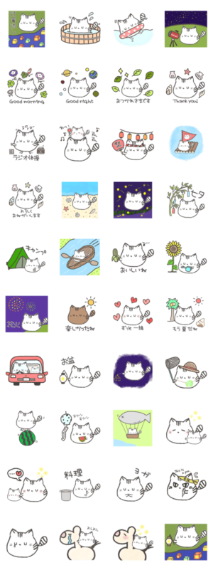 丸いゆるキャラ、お茶目で元気いっぱいのこねこの夏の生活をスタンプにしました。 灯篭流し/海/スイカ割り/ラジオ体操/祭/キャンプ/風鈴/気球/花火/七夕/ホタルねこさん より発売