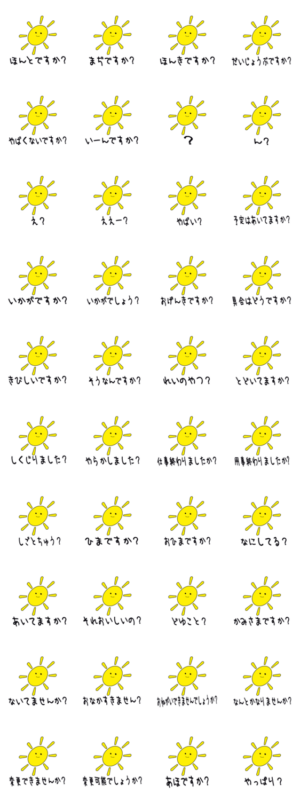 了解&承知&お疲れさま&ありがとうシリーズ第6弾。今回は疑問符のついたいろんなフレーズのスタンプです。