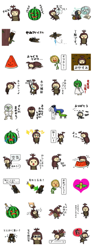 猛暑に負けるなカブトムシと蝉の日本の夏 スタンプ画像一覧