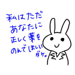 薬剤師のうさぎさんは患者さんに正しく安全に薬を飲んでもらいたい。ちょっぴりスパイシーだけど一生懸命お仕事します。お大事にどうぞ。