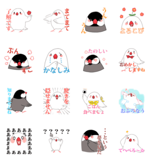 とりことりこスタッフが描いたもちもちで丸い鳥のスタンプ第2弾! 今回は文鳥さんです。tricotricot より発売