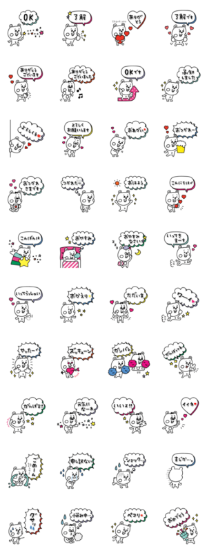 毎日使える、ミニくまカップル+吹き出しのカラフルなスタンプです♪