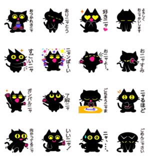 魔法使い見習い「黒ねこのプリン」です。日常よく使われる会話や表情を厳選したキャラスタンプです。みなさん可愛がってください。作 イカ タコイカ タコ より発売