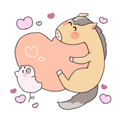 競馬場に足しげく通う馬とピンクの豚のスタンプです。はんぺんぱんだ より発売