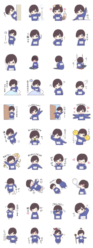 ぢっきゅん専用のスタンプ第1弾です。ジャージのゼッケンに「ぢっきゅん」の名前が入っています。