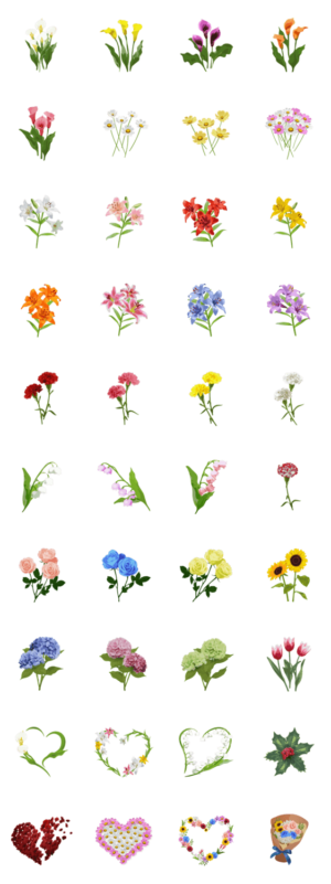 花言葉(ユリ,オランダ海芋,カーネーション) スタンプ画像一覧