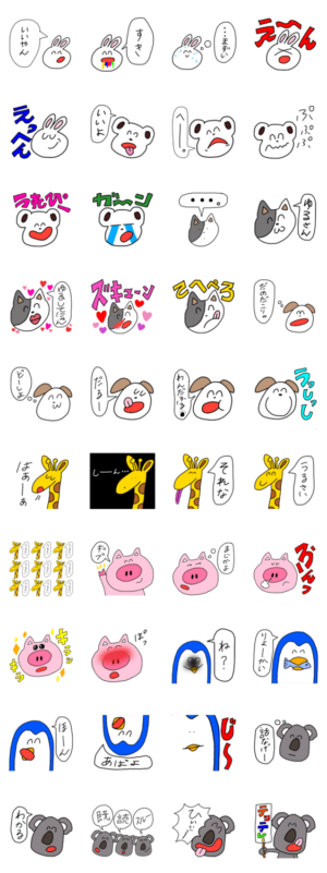 愉快な動物たちのスタンプです。絵文字も出てます!面白い一言でトークを盛り上げます!