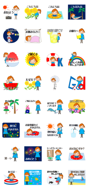 大きな文字スタンプ くナチュラルガール 夏 スタンプ画像一覧