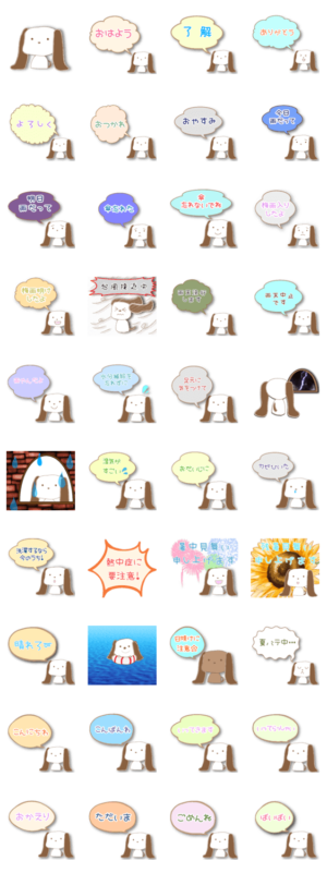 夏に使える日常スタンプです。 夏/暑い/雨/梅雨/大雨/台風/雷/日焼け/夏バテ/熱中症/暑中/残暑/挨拶/たれ耳/犬/ふらっぴーどっぐ/tbsk より発売