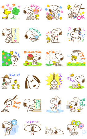 スヌーピーの春に使えるアニメスタンプが登場。ほのぼの可愛いスヌーピーと春のトークを満喫してね♪